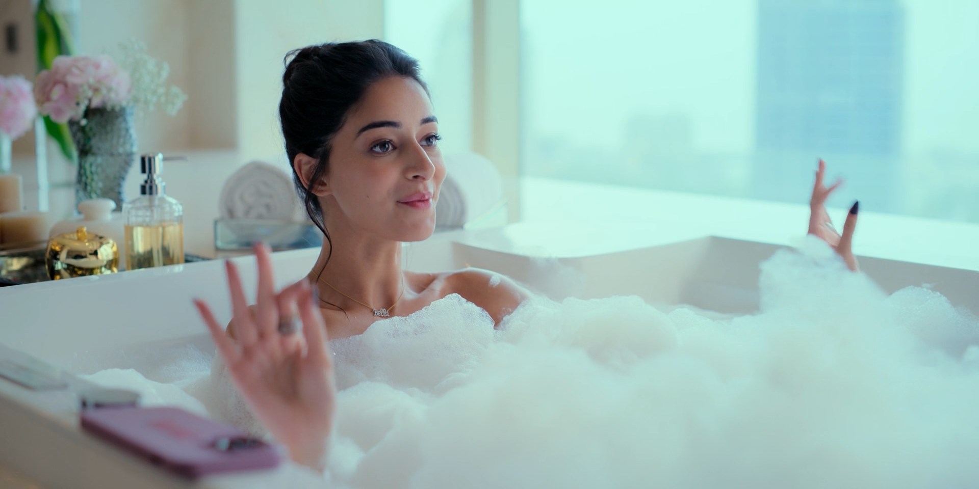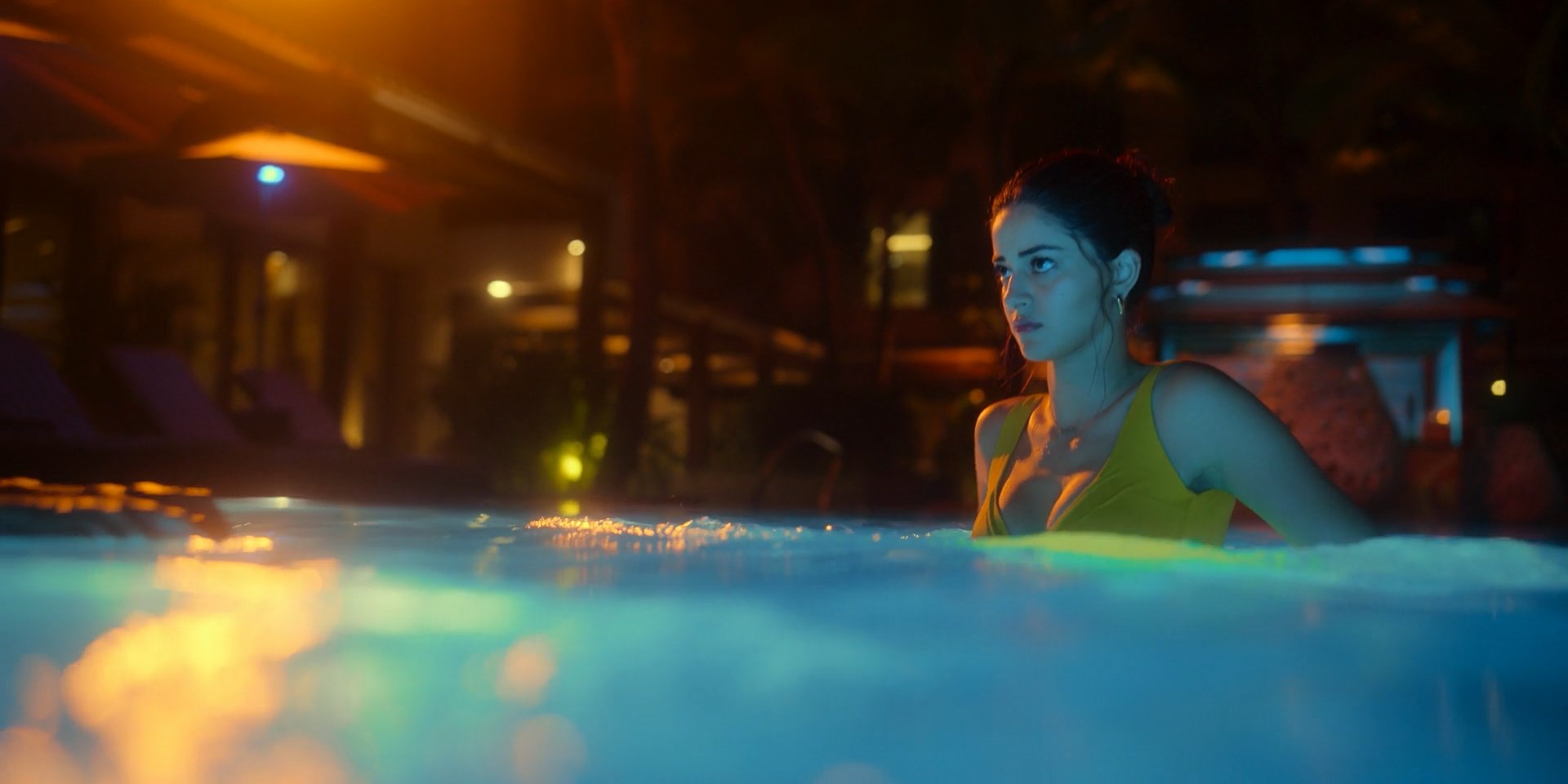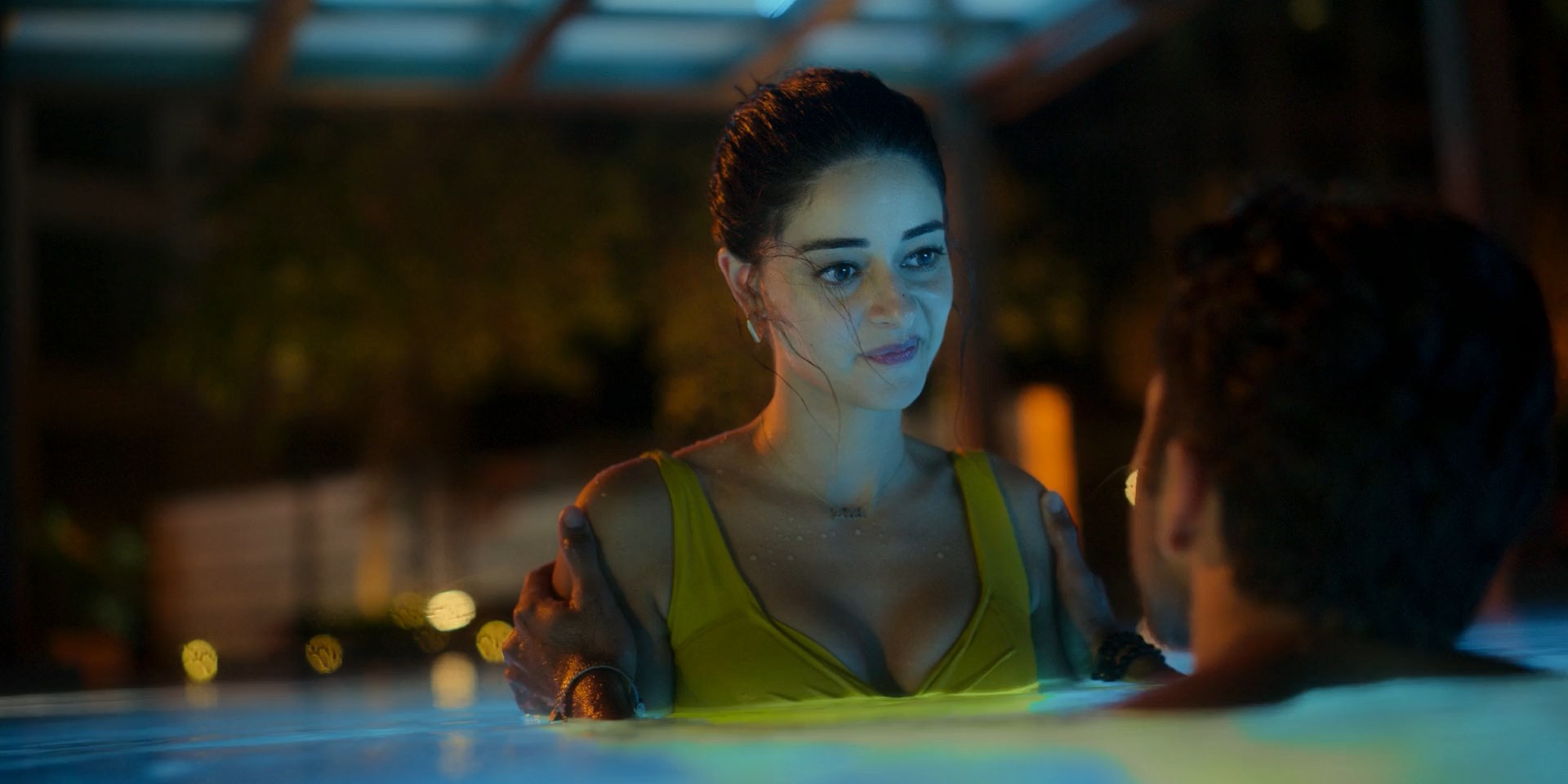 Ananya Panday has sexy scenes in the show “Call Me Bae” season 1 episodes 1, 2, 7 which were released in 2024. The actress shows us a good cleavage, and her seductive body in a bikini in that clip.