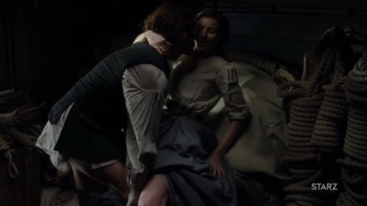 Caitriona Balfe in clothed sex scene on the ship. The clip was extracted from the ninth episode of new Outlander`s season.