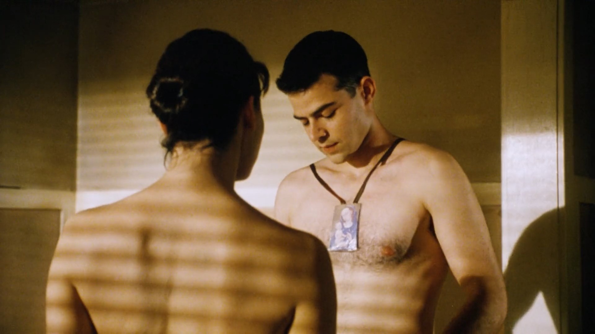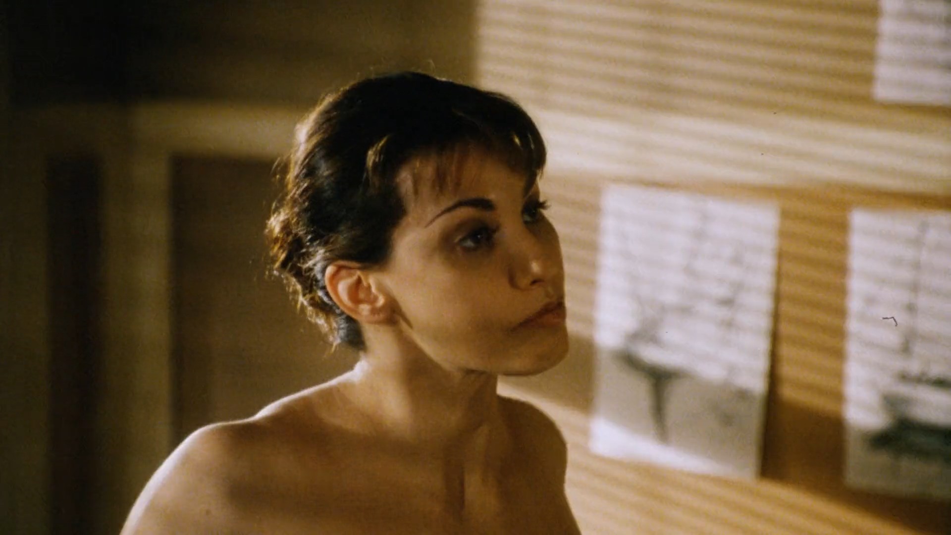 Gina Gershon is sexy in the movie “Black and White” which was released in 1999. She shows us a cleavage in the clip.