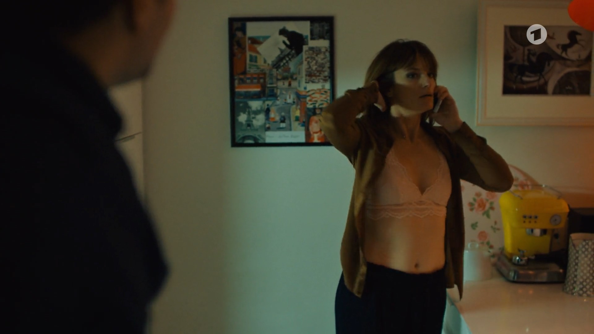 Ina Paule Klink is very sexy in the show “Der Zurich-Krimi” season 1 episode 13 which was released in 2021. She is demonstrating her breasts in a bra here.