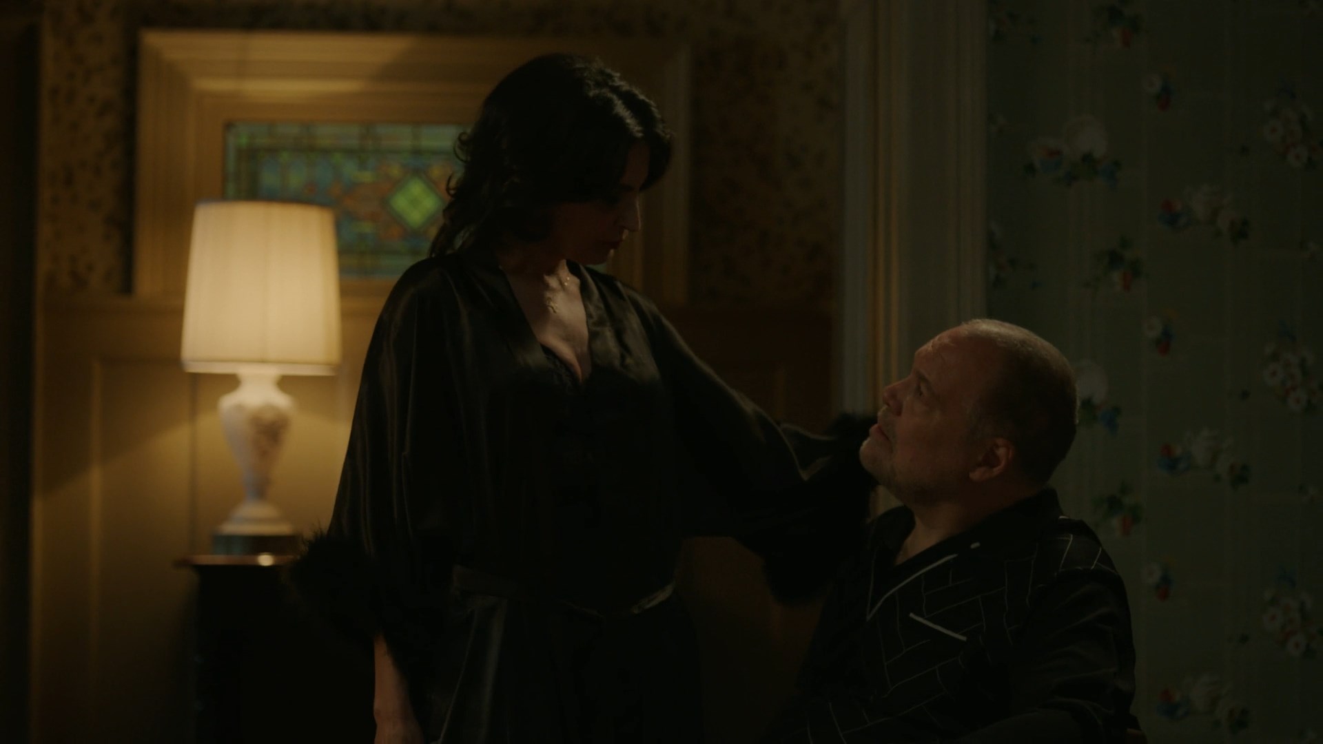 Kathrine Narducci is looking sexy in the show “Godfather of Harlem” season 3 episode 9 which was released in 2023. She is demonstrating us a cleavage, and her body in a negligee here.