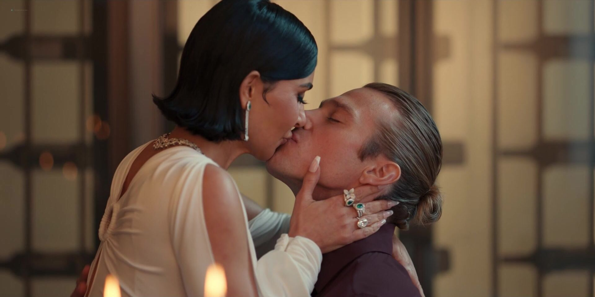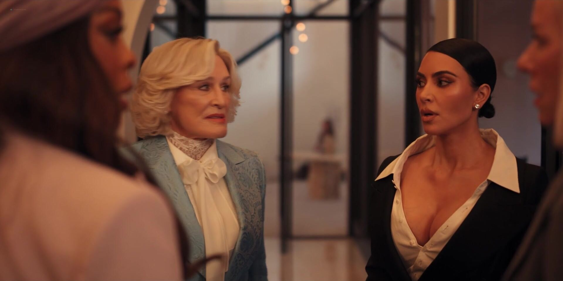 Kim Kardashian, Niecy Nash, Jessica Simpson have sexy moments in the show “All's Fair” season 1 episodes 1-3 which were released in 2025. We can see sex scenes with them in the clip. Kim Kardashian shows us a good cleavage in the clip.
