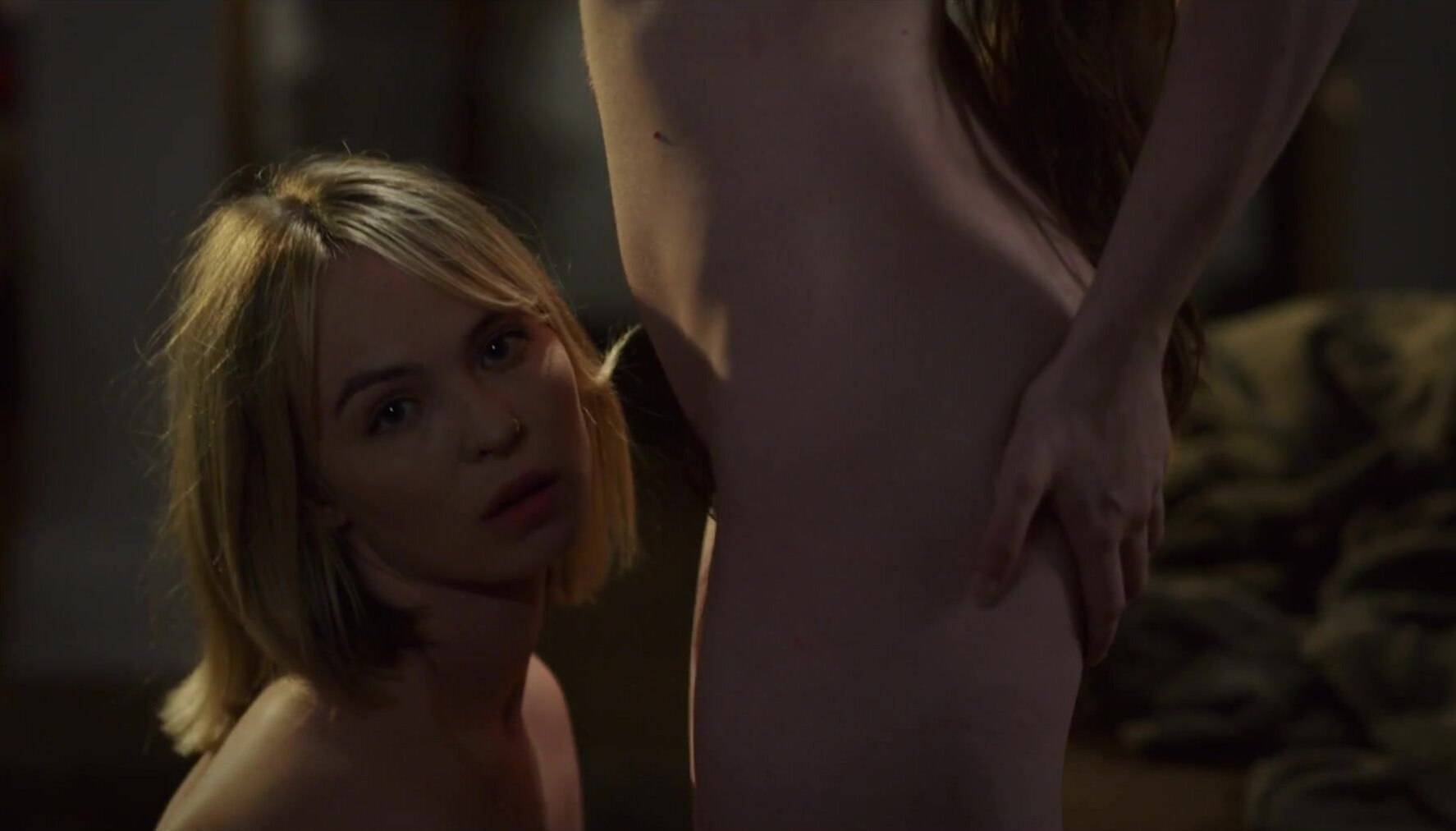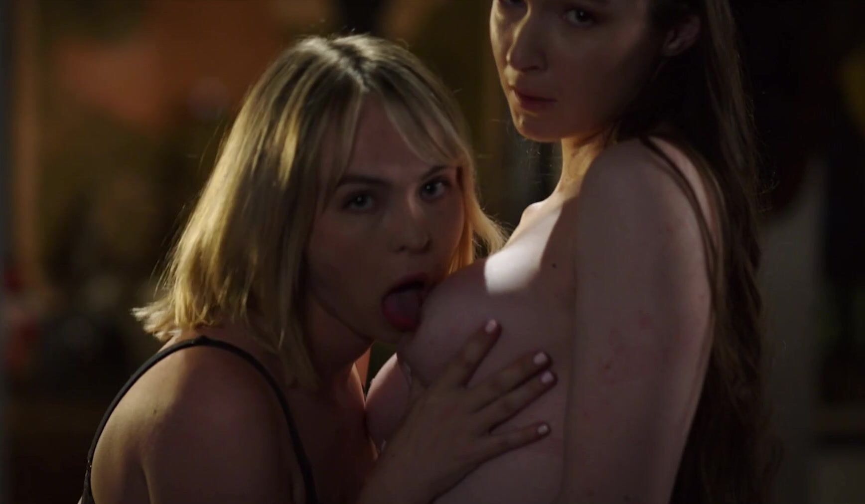 Porn actress Lilly Bell and regular actress Elliott Woods has nude scenes in 'Prompt' witch was released in 2025. Both actresses are fully nude, showing their breasts, buttocks, and pubic hair. Lilly has a sex scene with a man. In the end of the clip Lilly and Elliott also have a lesbian sex scene.
