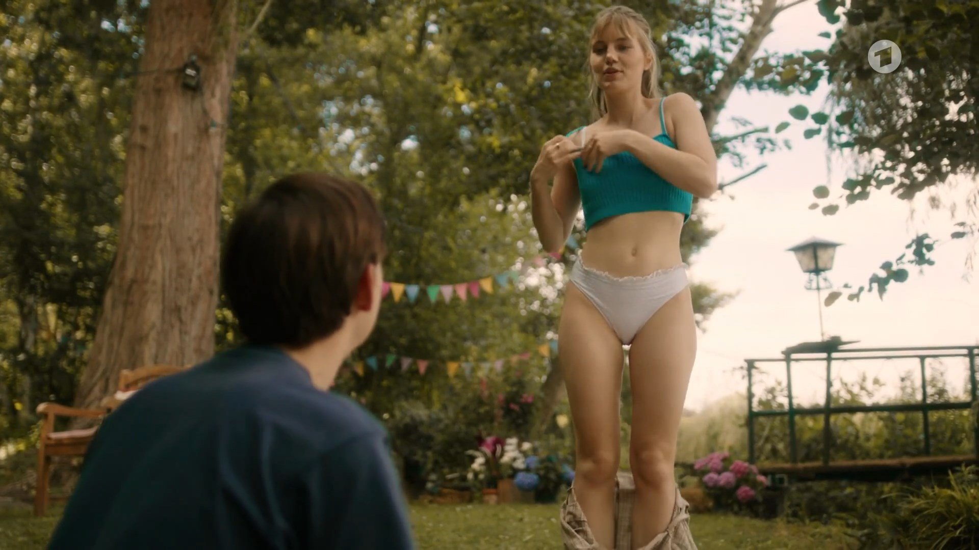 Louise Sophie Arnold is very sexy in the show “Kathe und ich” season 5 episode 2 which was released in 2024. The actress shows us a good cleavage, and her seductive body in a bikini in this video.
