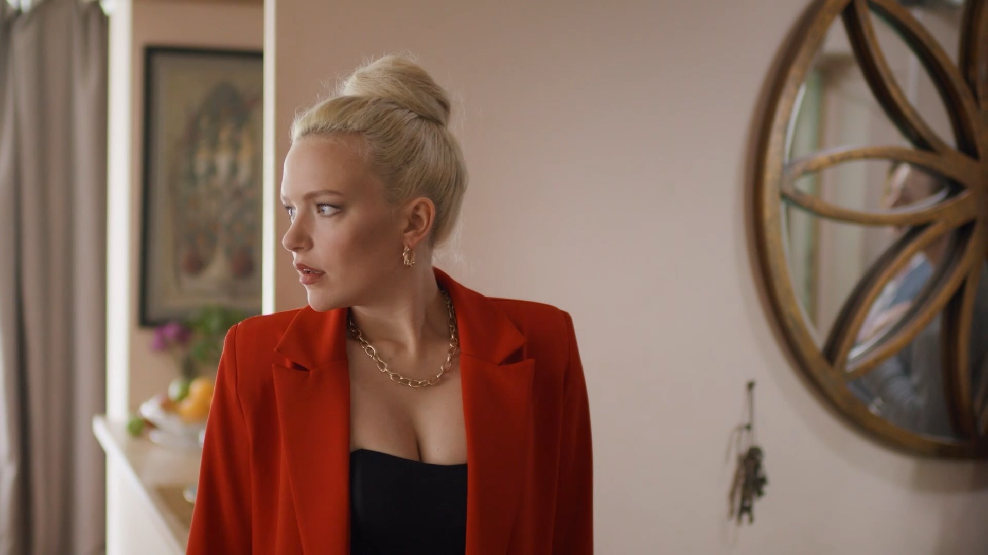 Mariya Shorokhova is sexy in the show “V dvukh shagakh ot schastya” season 1 episodes 1, 4 which were released in 2024. She shows us a good cleavage here.
