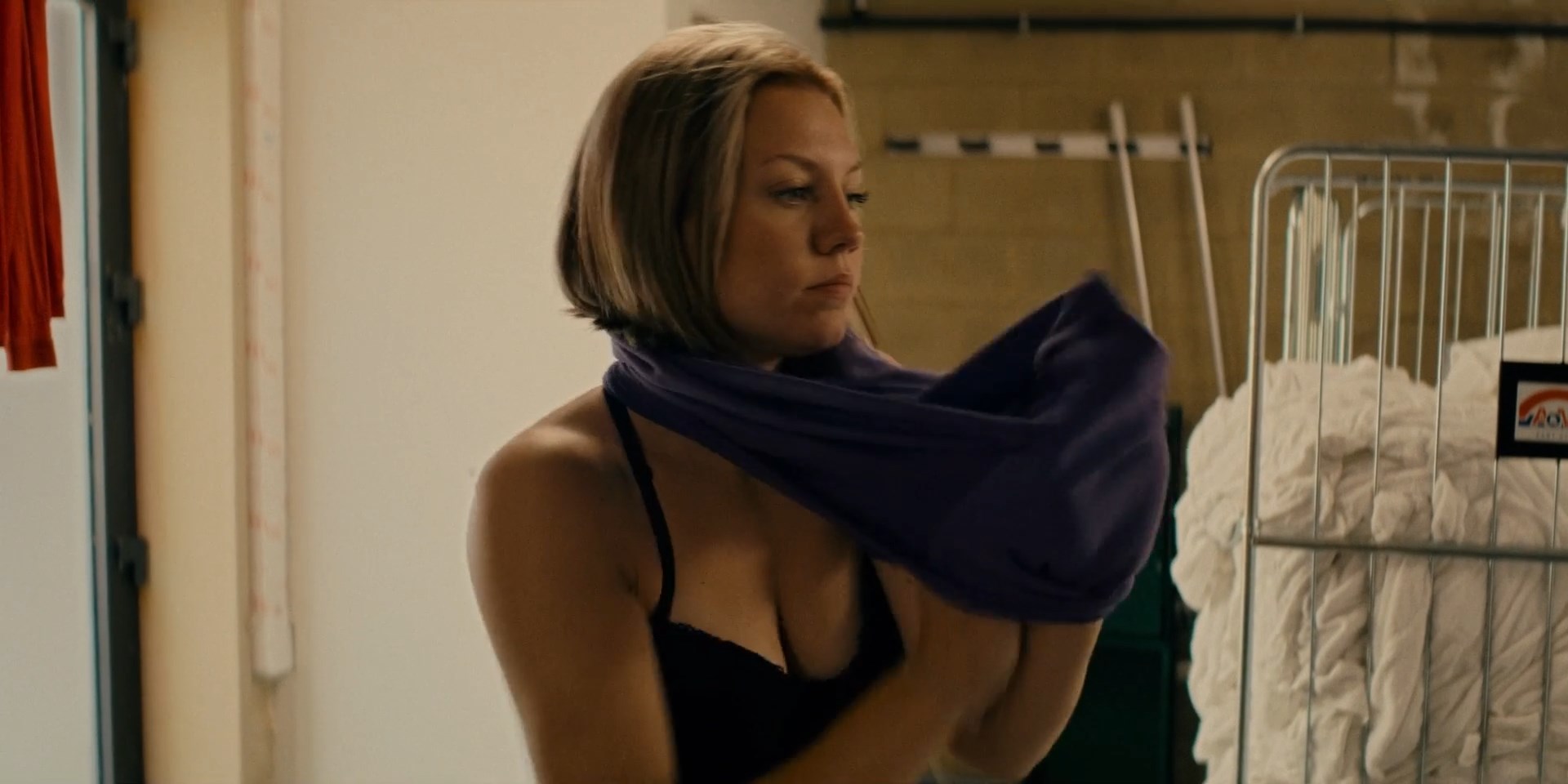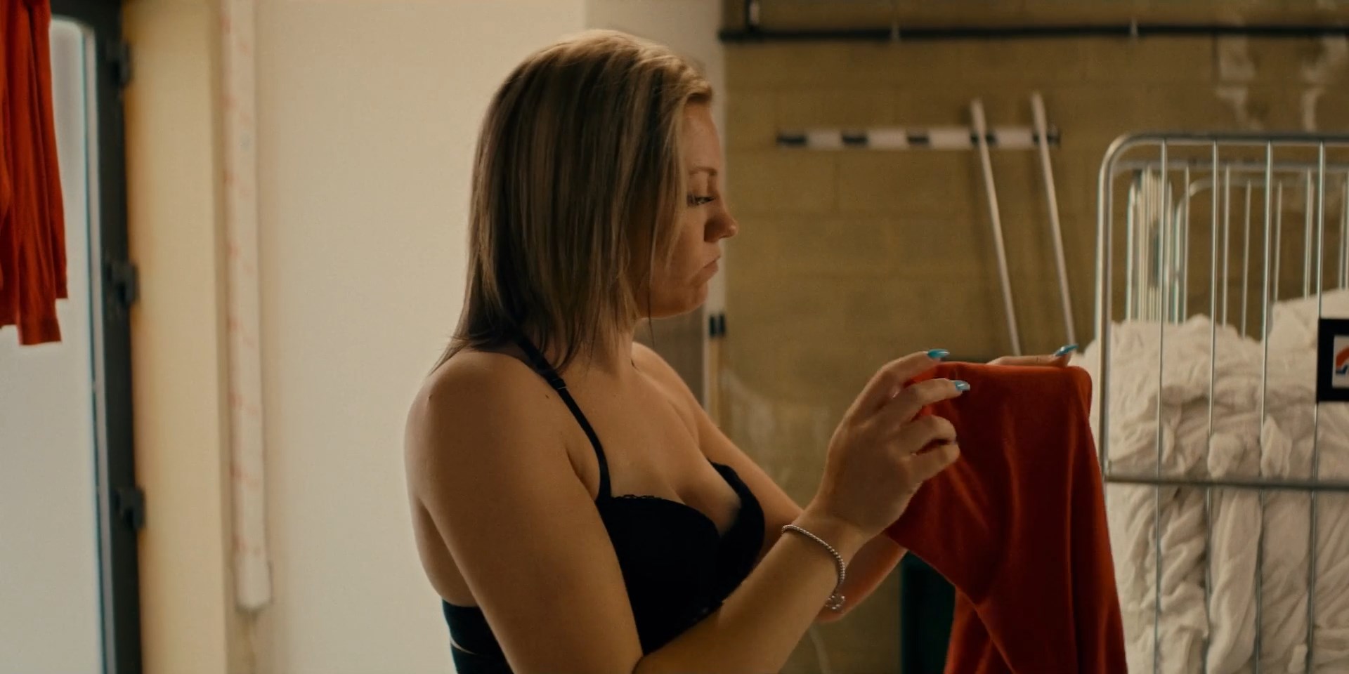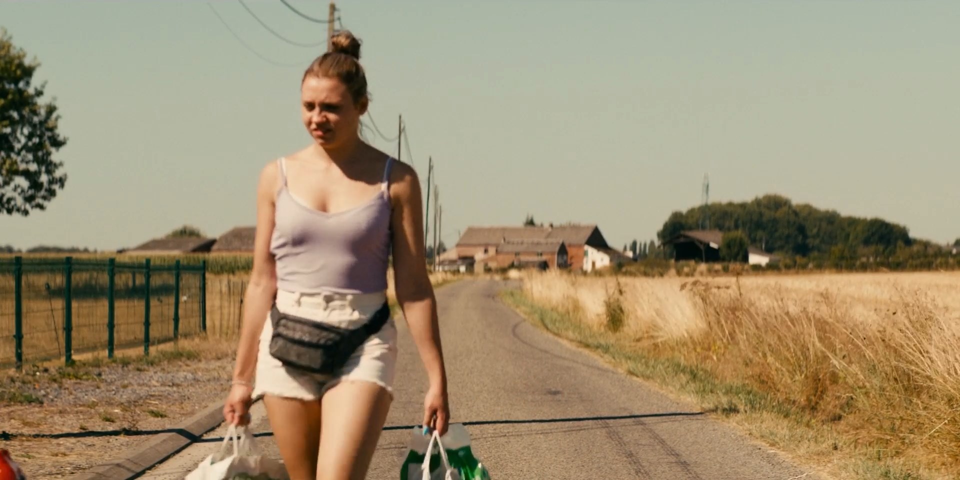 Purdey Lombet is sexy in the movie “Il pleut dans la maison” which was released in 2023. She shows us a good cleavage, and her breasts in a bra there.