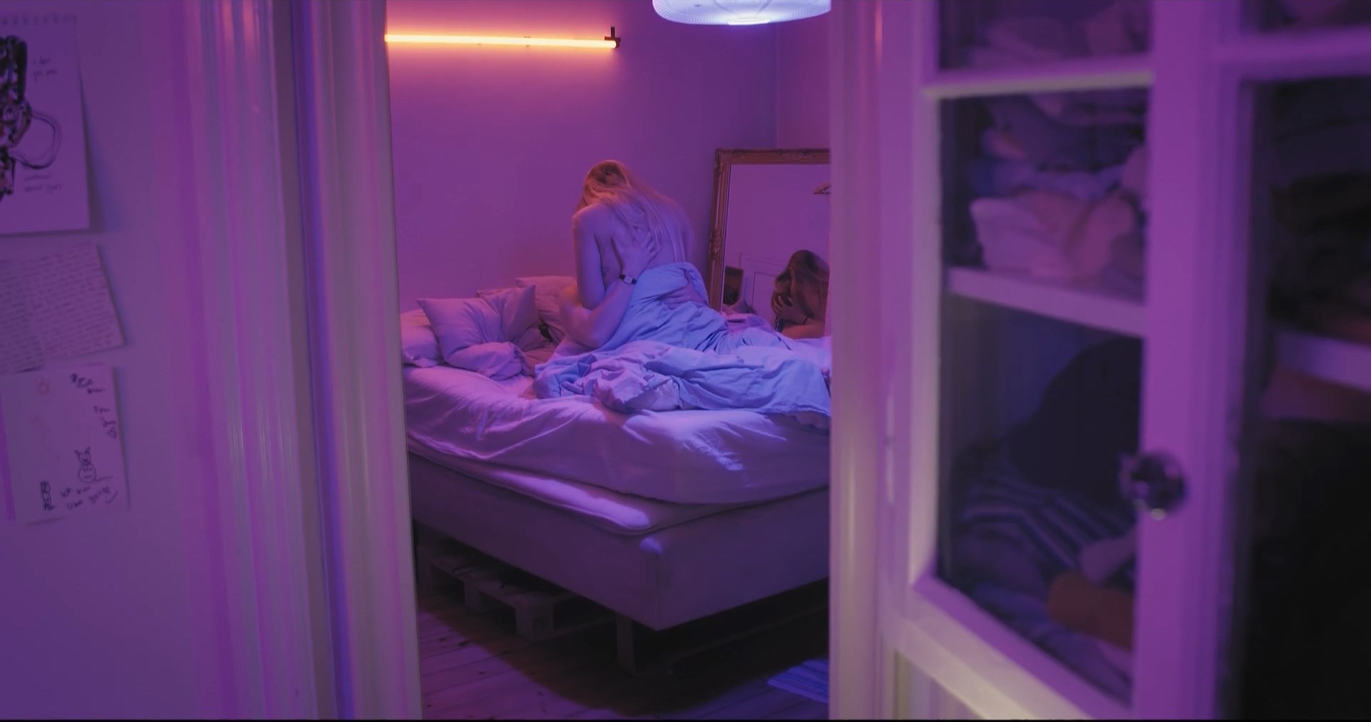 Sara Dhimitri has sexy scenes in the movie “Facaden” which was released in 2021. She shows implied nudity here. We can also see sex with Sara Dhimitri in this video.