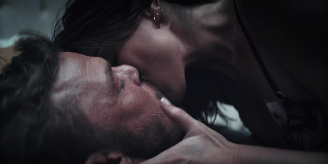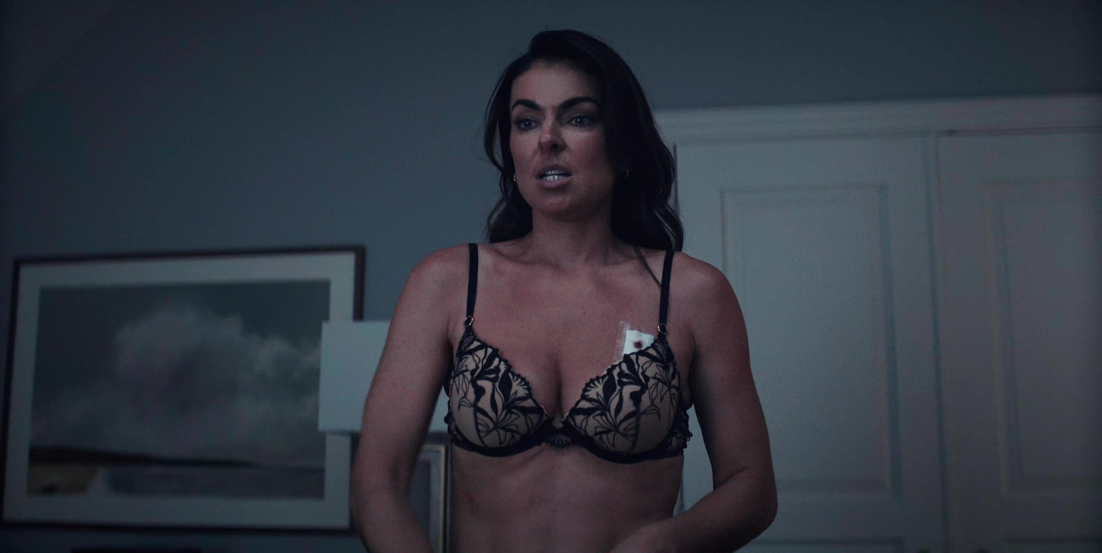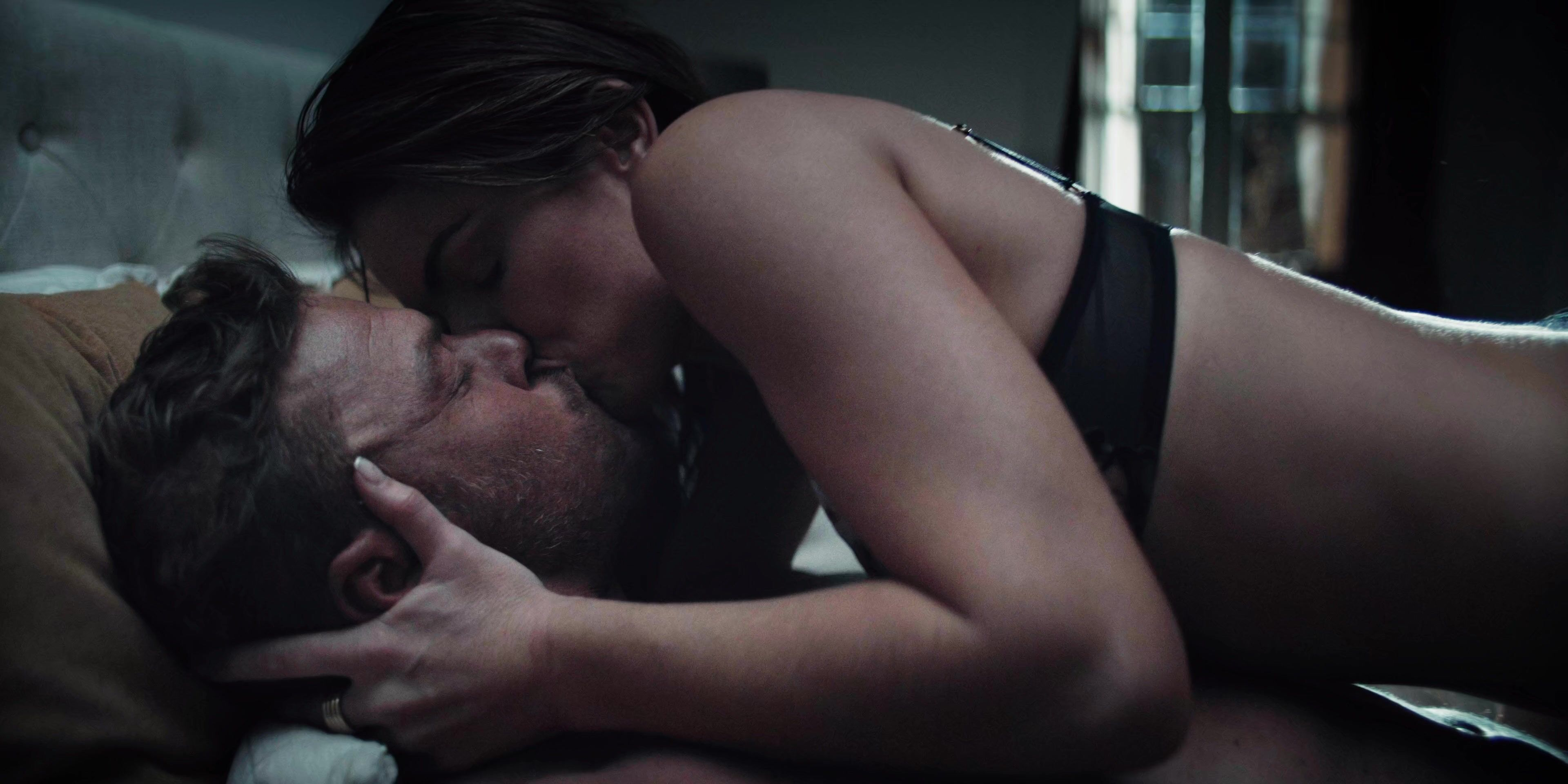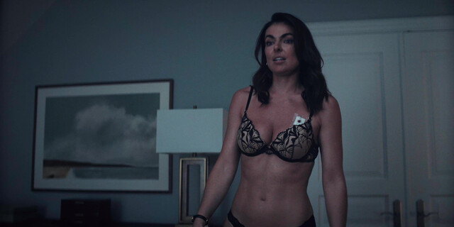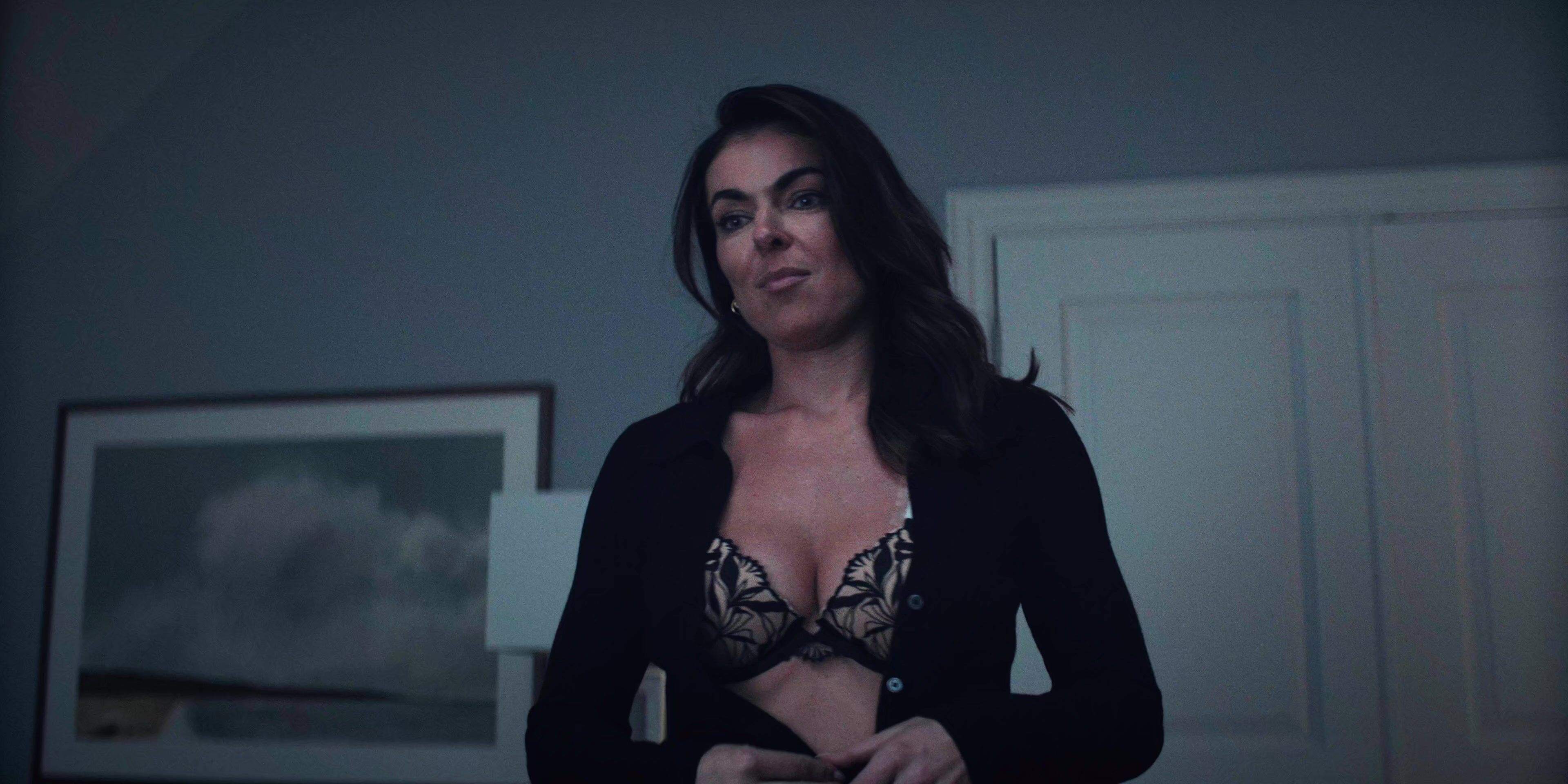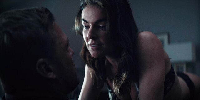 Serinda Swan is so horny in this scene, she entered in room then she removed her jacket then she wearing black bra and sex with guy.