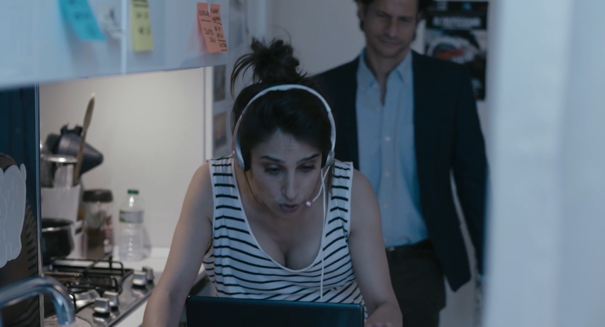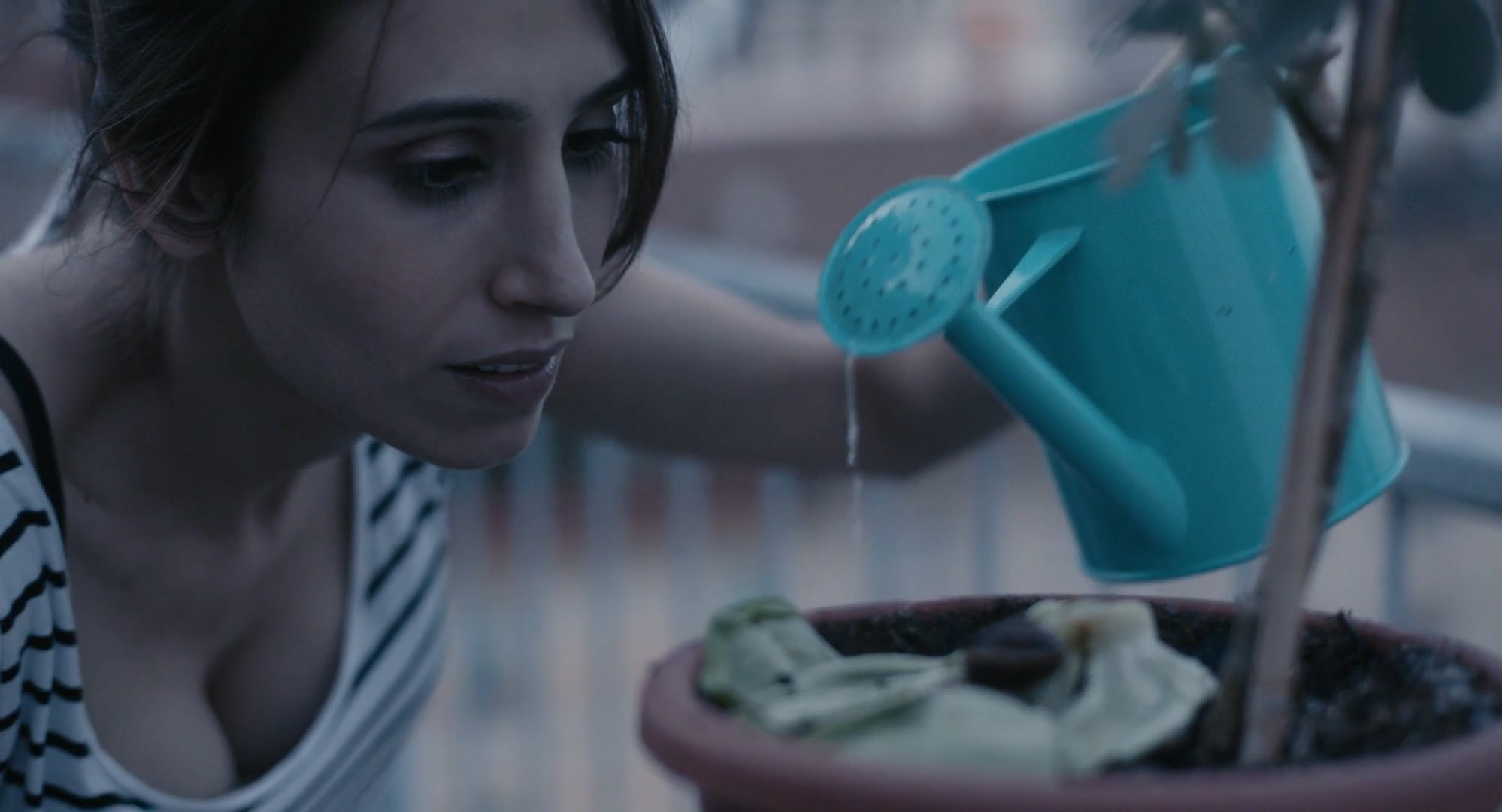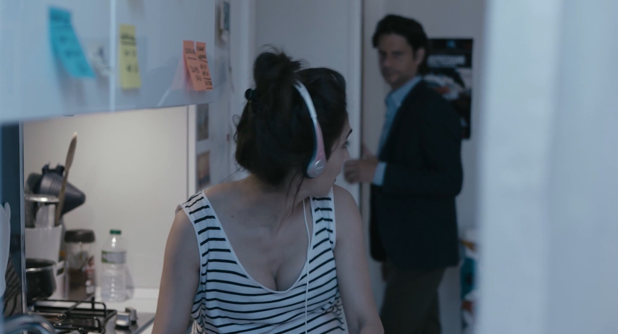 Silvia D'Amico is sexy in the movie “La strategia della lumaca” which was released in 2017. She shows us a cleavage here.