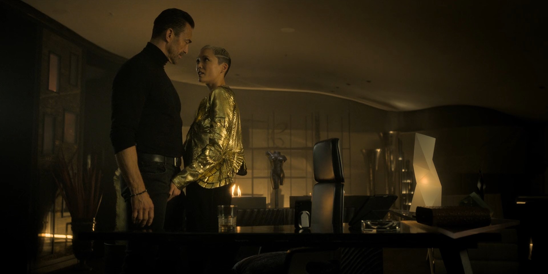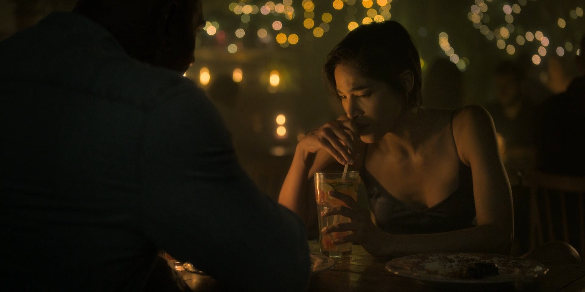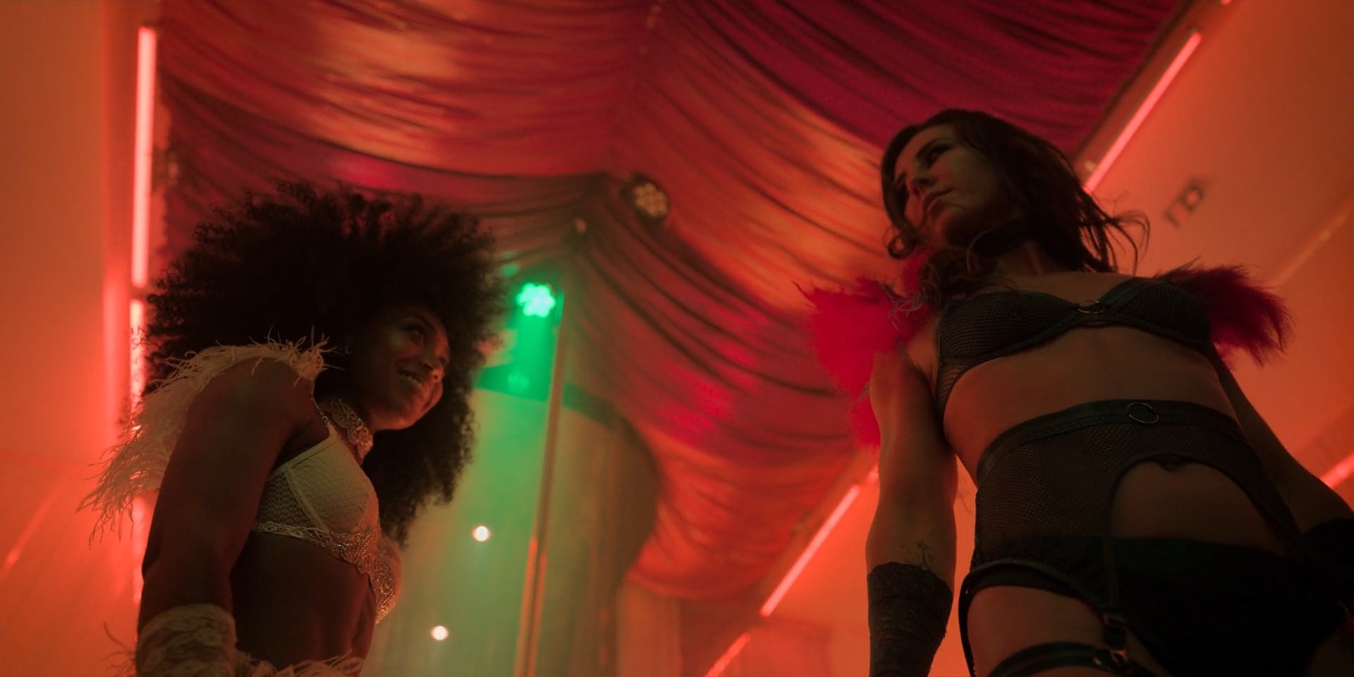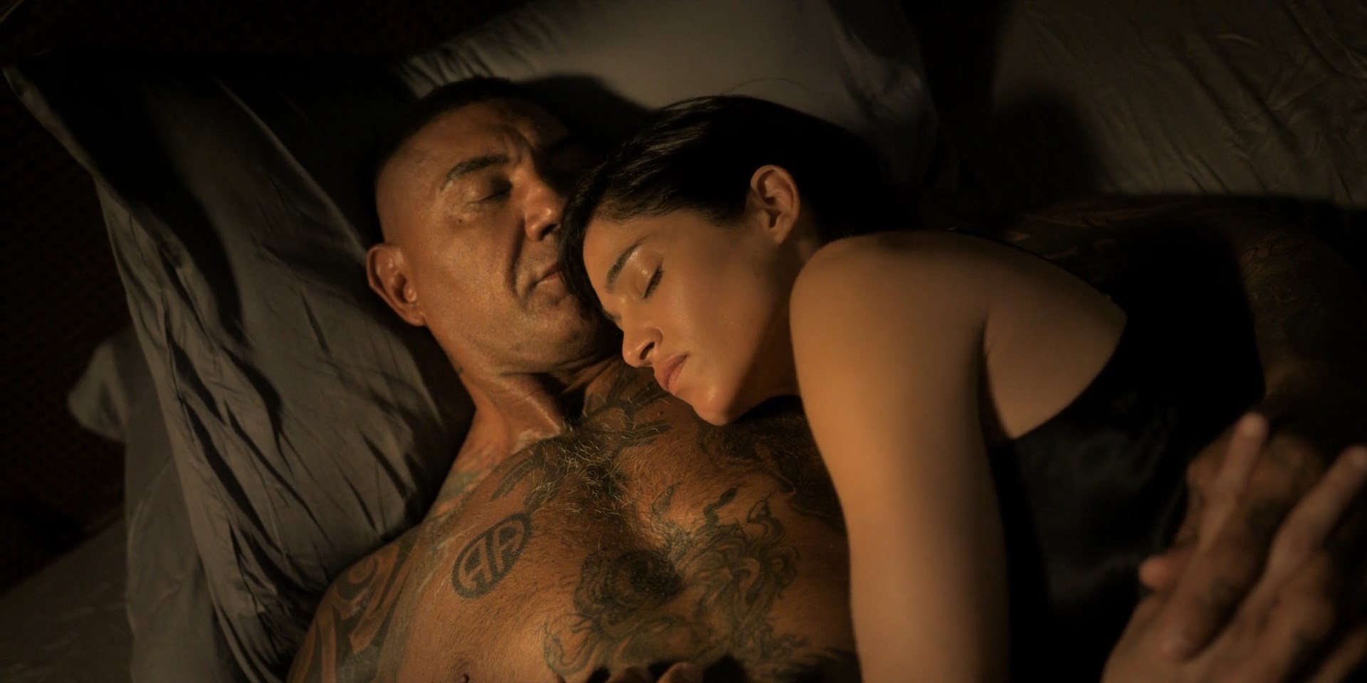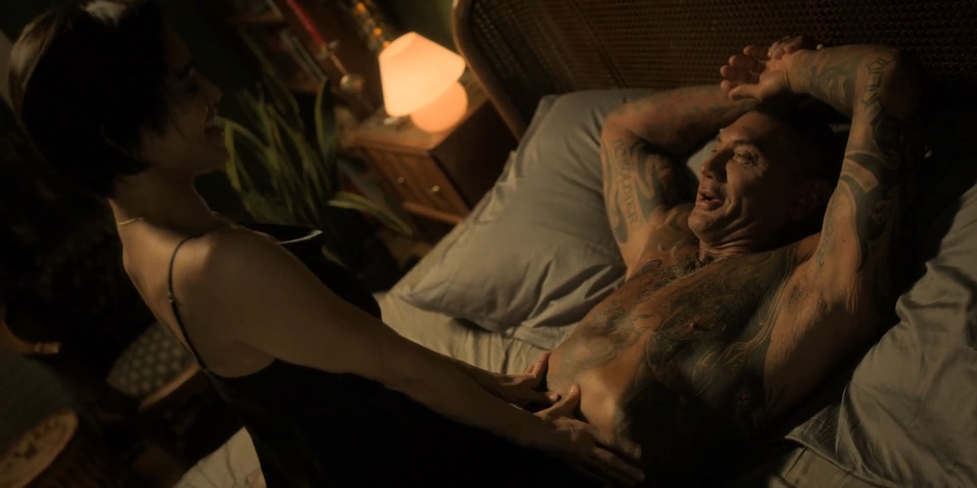 Sofia Boutella is sexy in the movie “The Killer's Game” which was released in 2024. She demonstrates the body in a silk negligee here.