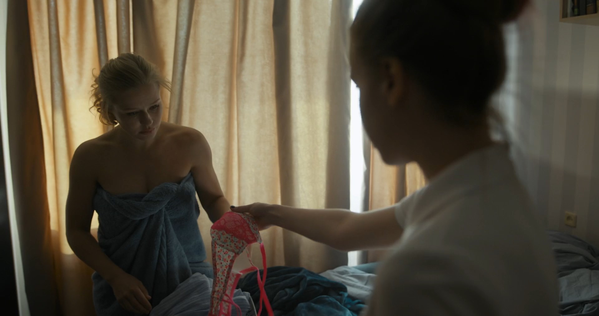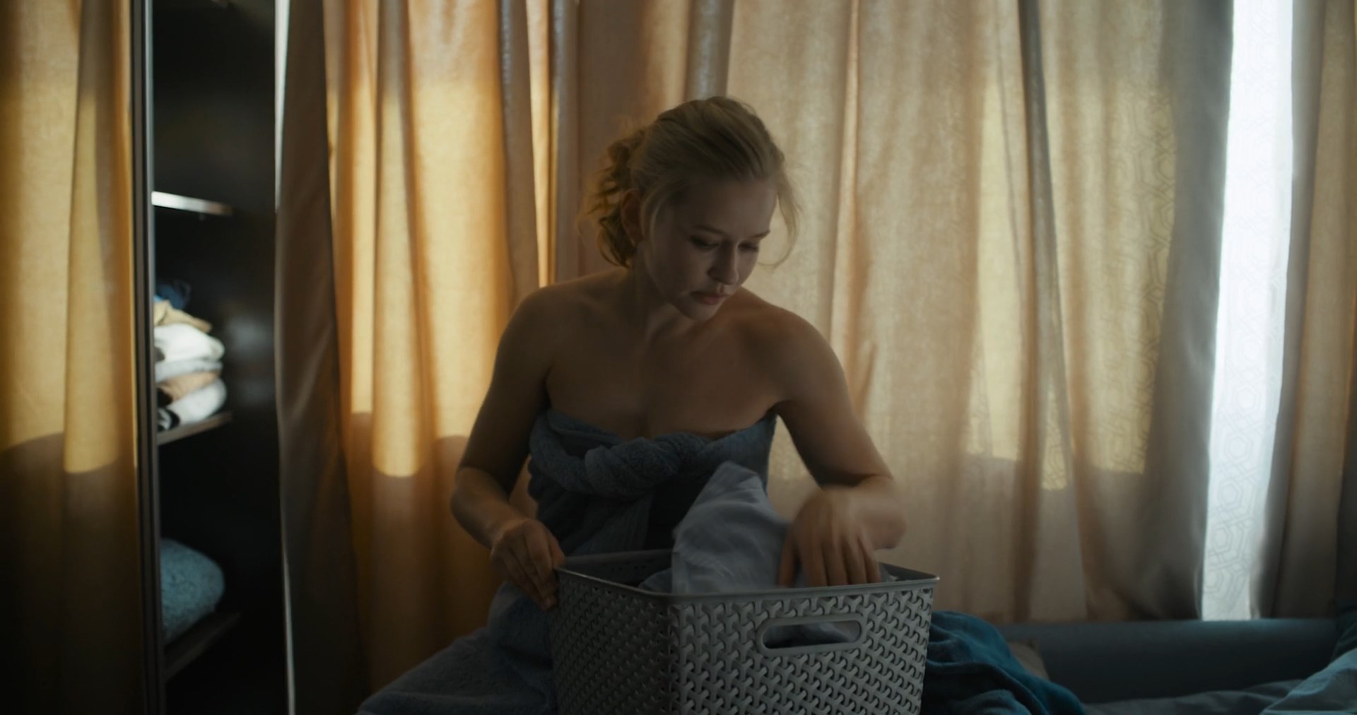 Yuliya Peresild has sexy moments in the movie “Vyzov” which was released in 2023. The actress shows us a good cleavage, and her body in lingerie in this clip.